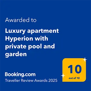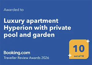 „Outstanding place with good vibes. This place is absolutely stunning! Apartment is very clean, perfectly equipped, nicely decorated and well placed. It was a really pleasure to spend time there. Interior and exterior of Hyperion Appartment encouraged do rest and allowed to relax. Garden with the swimming pool, grill and terrace is wonderful, we spent there incredibly gorgeous time. Sandra and Branko are very, very nice, friendly and helpful. We are very happy that we choosed their place to stay in Murter and we would like to have opportunity to visit Luxury Apartment Hyperion again.“
